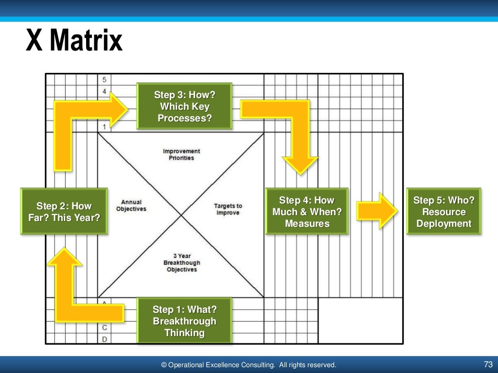 While summarising a problem in A3 report format, I came across Hoshin Kanri. While reading about it, I saw the X-Matrix picture.